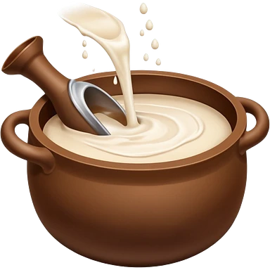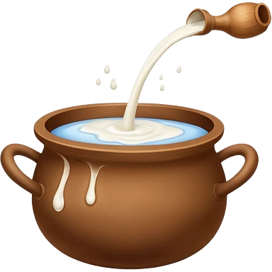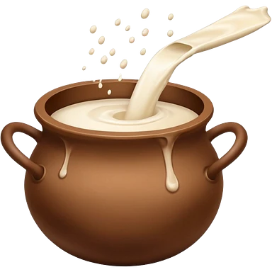 Milk flowing in a brown mud pot under fire emoji