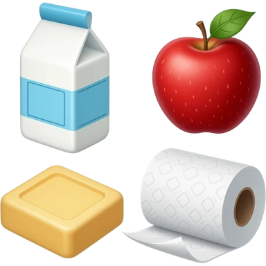 Milk, apple, soap, and paper towels emoji