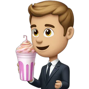 3-year-old boy wearing Palestinian flag-coloured clothes and a traditional Palestinian keffiyeh, smiling, holding a strawberry milk shake emoji
