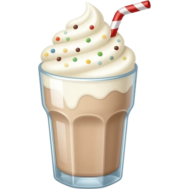 A thick, creamy milkshake in a tall glass with whipped cream on top and a straw emoji