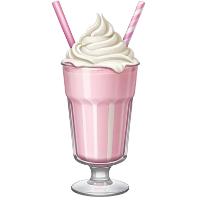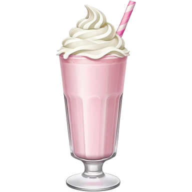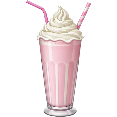 A thick, creamy milkshake in a tall glass with whipped cream on top and a straw emoji