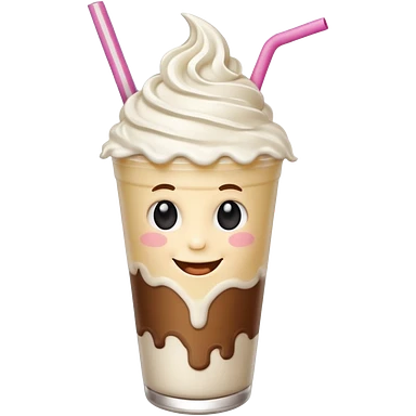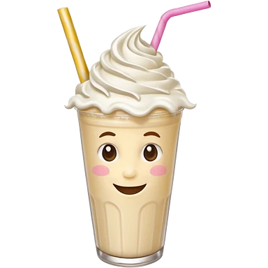 milkshake emoji with a cute face and a side swoop haircut emoji