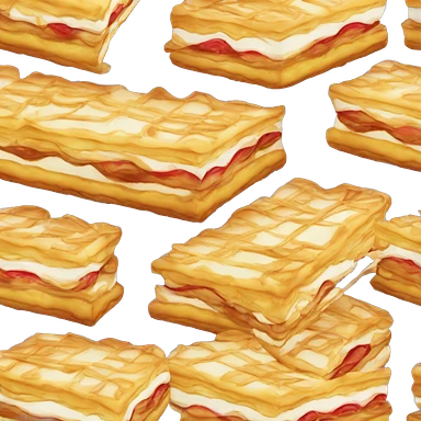 mille-feuille-cinematic-realistic-mille-feuille-dessert-emoji,-depicted-as-a-rectangular delicate-pastry-composed-of-two-crisp-layers-of-puff-pastry-with-a-rich-cream-filling,-rendered-with-intricate-textures-and-elegant,-soft-lighting. Please only show two layers only. emoji