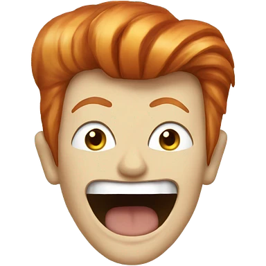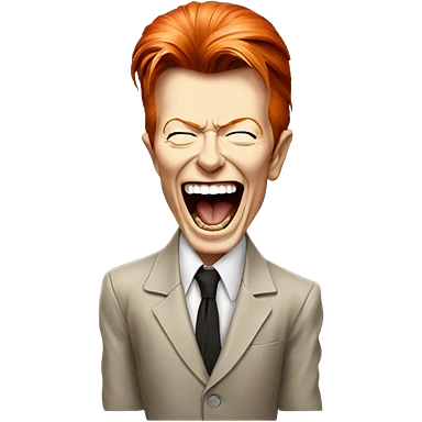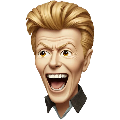 David Bowie inspired male rockstar emoji, short pink hair, lightning bolt face paint, yellow skin, dark lipstick, purple and blue jacket, microphone, white background emoji