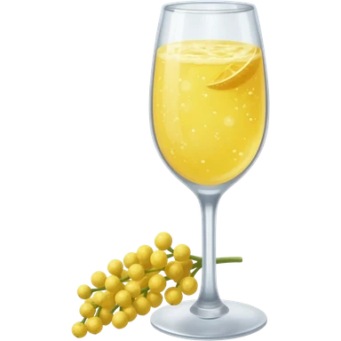 un bicchiere di vino 🥂 con la mimosa (fiore della festa della donna giallo) potato sopra emoji