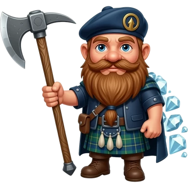 Scottish dwarf with a diamond pickaxe in a Minecraft style emoji