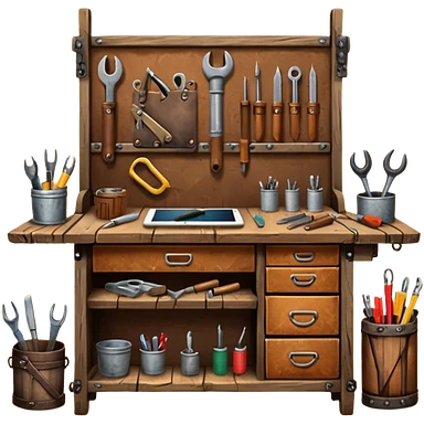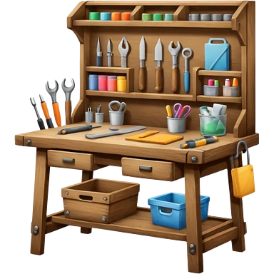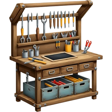 minecraft crafting station with tools, stone, wood, glass, sand, ... emoji | AI Emoji Generator