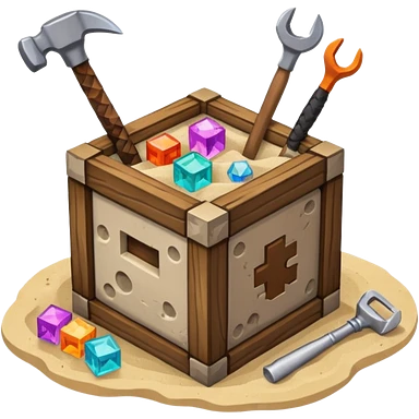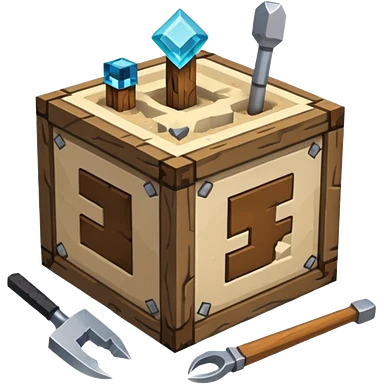 crafting table with tools, stone, wood, glass, sand, ... like a minecraft style cube crafting table emoji