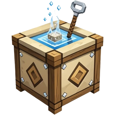 crafting table with tools, stone, wood, glass, sand, steam, water... like a minecraft style cube crafting table 100ù like a minecraft cube emoji