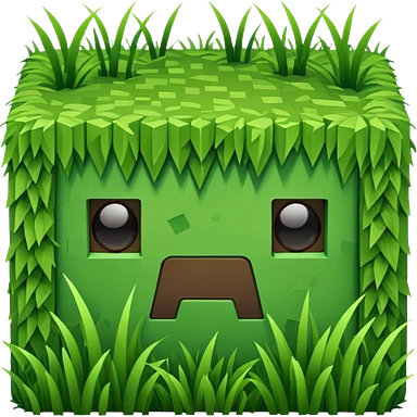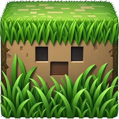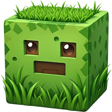 Minecraft grass block, square shape, brown and green, smooth emoji | AI Emoji Generator