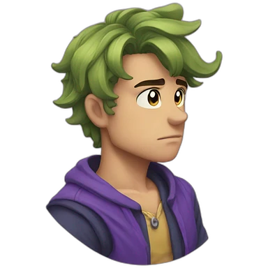 Mojo jojo, jugando al fútbol con camiseta violeta y línea diagonal amarilla emoji