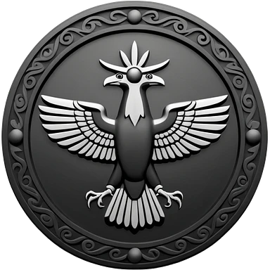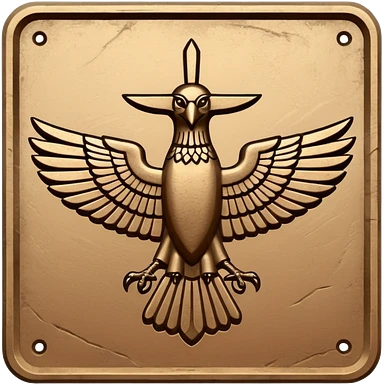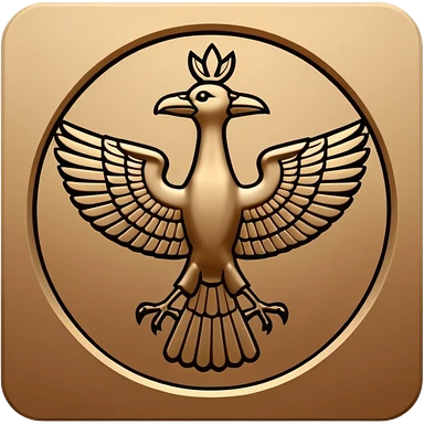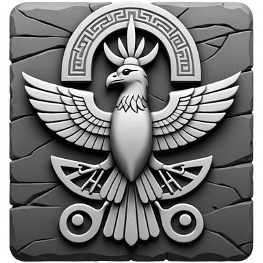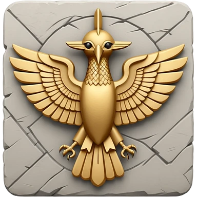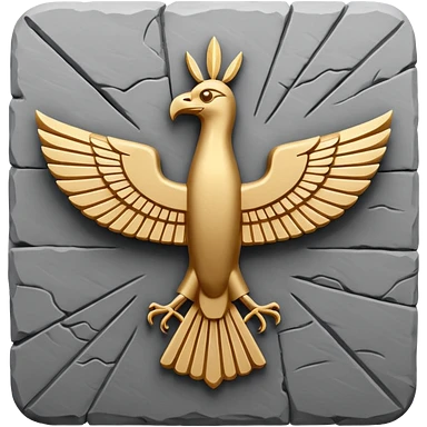 Minimal Faravahar-inspired ancient glyph, Unicode-like pictogram similar to 𓄂𓆃, abstract, single-symbol design, monochrome, flat, ancient carved sign, no background, no text emoji
