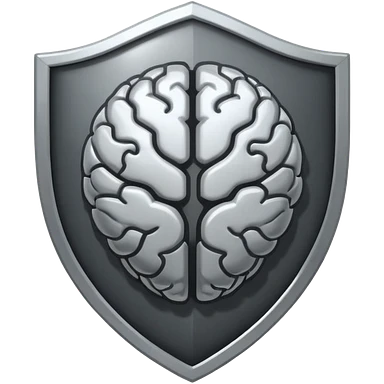 Minimal flat icon of a shield combined with a human brain, symbolizing self-control and mental discipline. Monochrome, premium style, high contrast, no text, dark theme friendly. emoji