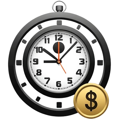 Minimal flat icon, tax money symbol with ruble sign, combined with a clock showing delayed payment, clean vector style, simple geometric shapes, monochrome, no text, no gradients, white background, clear outline, infographic icon emoji