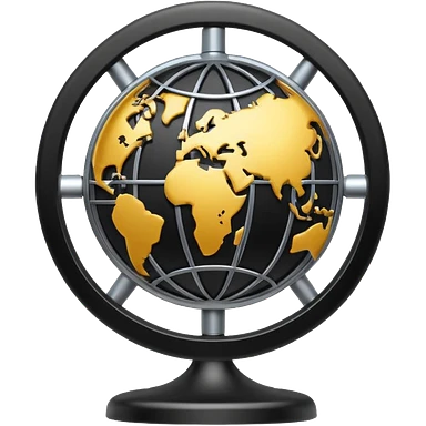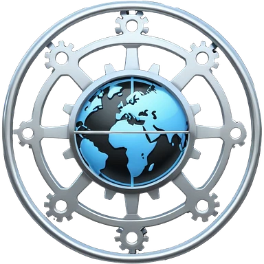 Minimal black line icon of a gear and globe, with circuit-style connected nodes, flat vector style, thin stroke, white background, representing global system configuration and connectivity. emoji