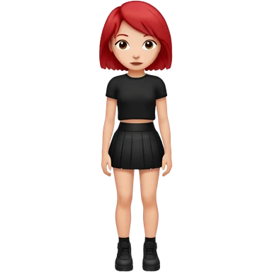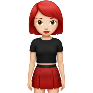 Show me a teacher in heels with a long mini skirt with red braids on standing up black emoji