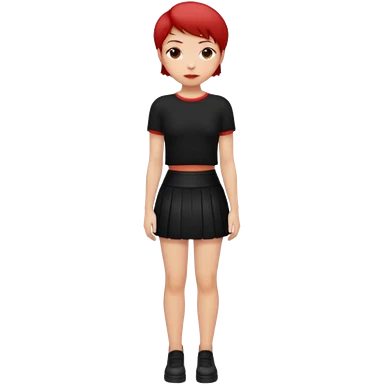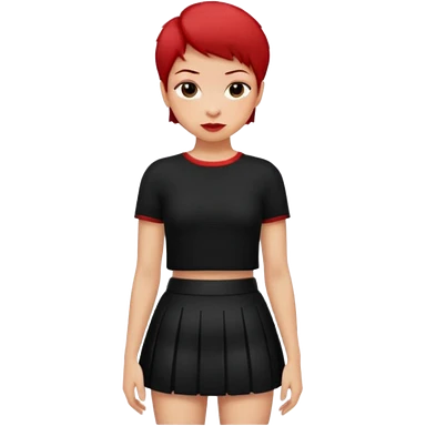 cute caucasian woman white top grey mini skirt black shoes emoji