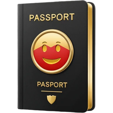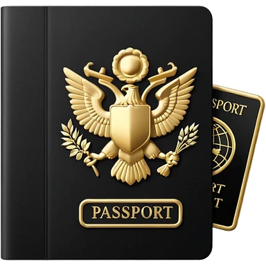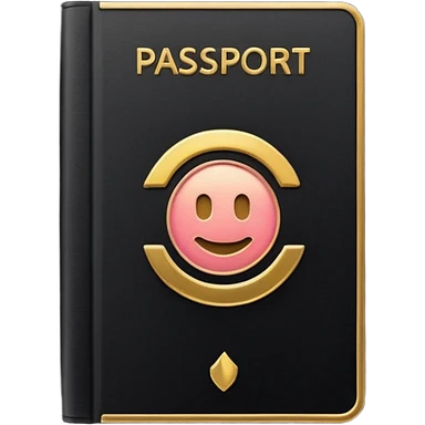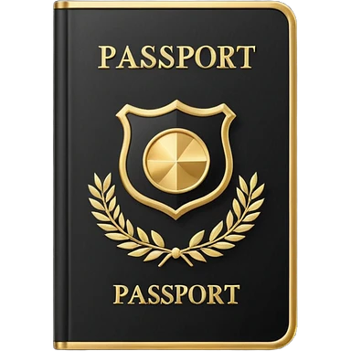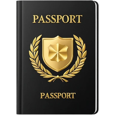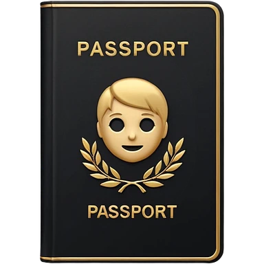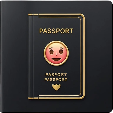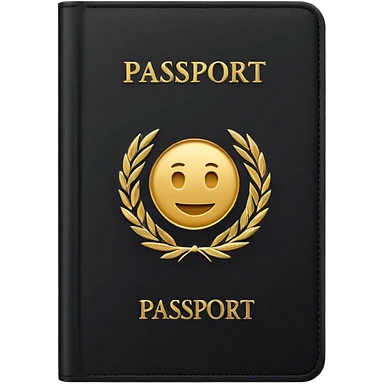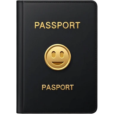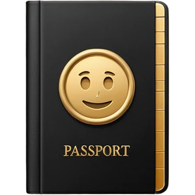 Minimal emoji icon of a black passport, matte cover, simple gold emblem, clean lighting emoji
