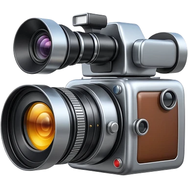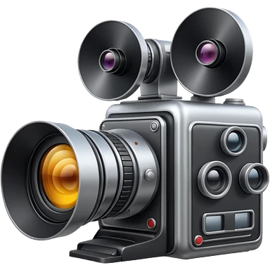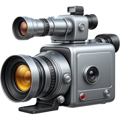 Minimal emoji icon of a huge cinematic metalic camera, front view, realistic lens, no gold emoji