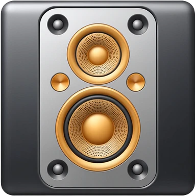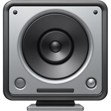 Minimal emoji icon of a modern metallic studio monitor, front view, detailed geometry, dark metallic body, subtle highlights, isolated emoji
