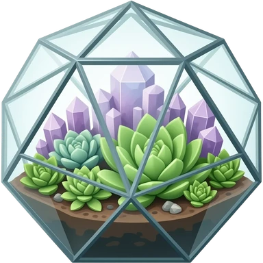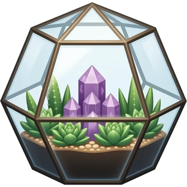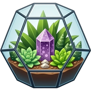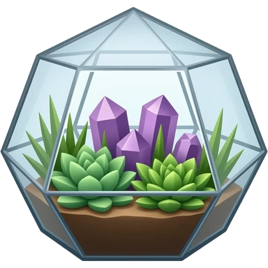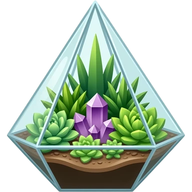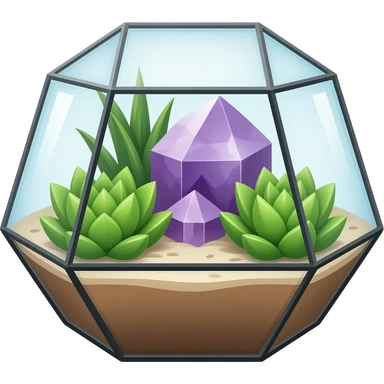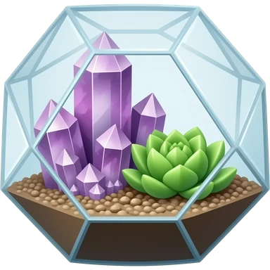 Mini succulents geometrical terrarium with amethyst cluster inside emoji | AI Emoji Generator