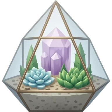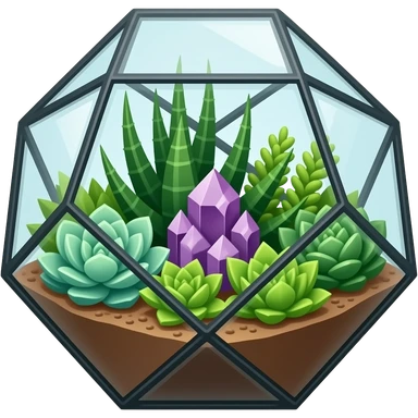 succulent geometrical terrarium with amethyst cluster inside emoji