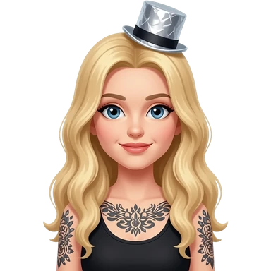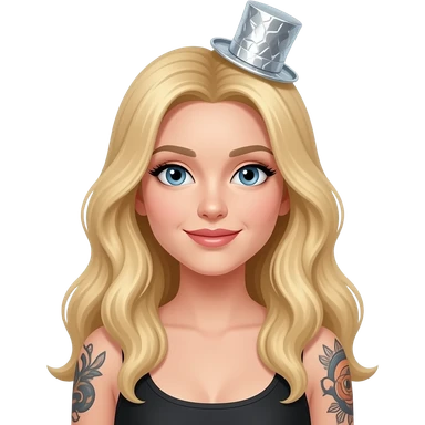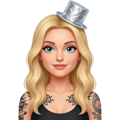 Mini Tin foil top hat conspiracy on blond woman with arm tattoos emoji | AI Emoji Generator