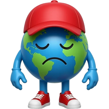 Earth with a face and wears a red cap and blue hands and blue legs and wearing a red shoes bump and closing eyes and frown mouth emoji
