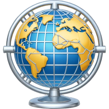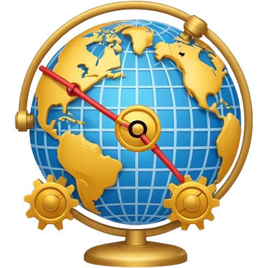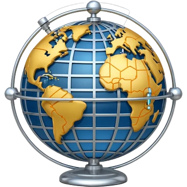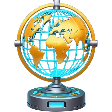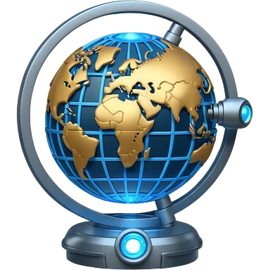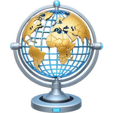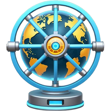 Minimal black line icon of a gear and globe, with circuit-style connected nodes, flat vector style, thin stroke, white background, representing global system configuration and connectivity. emoji | AI Emoji Generator