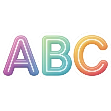 minimal colourful letters ABC, A on top, B and C under A sticker, elegant thin stroke, pastel tones, clean vector design, no background, modern aesthetic, 8k emoji