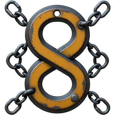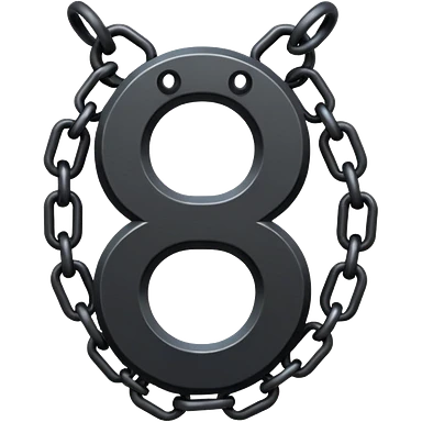 Emoji, gothic chain link shaped as number 8, forged from matte black steel, thick industrial form, subtle metal texture, no glow, no neon, flat emoji design, centered, transparent background emoji