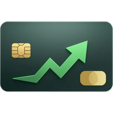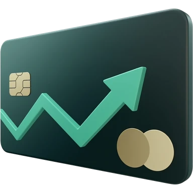 Minimalist 3D render of a sleek credit card with a subtle upward arrow, dark background, soft green accents, premium fintech style, lots of negative space emoji