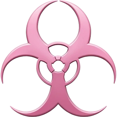 Minimalist emoji-style sticker of a fractured biohazard symbol with a small eye in the center. Stylized, geometric, no text.