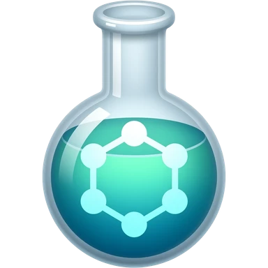An icon featuring a chemical flask, bubbling with liquid, and an atomic structure, symbolizing chemistry. The design includes molecules, a periodic table, and laboratory equipment, representing the study of chemical reactions and elements. Transparent background highlights scientific research. emoji