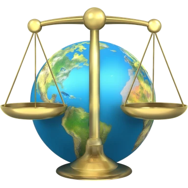 Minimalist golden scales of justice balanced over a globe, symbolizing global law and fairness emoji