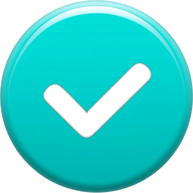 Minimalist emoji icon, bright turquoise circular button with a white check mark symbol in the center, flat design, soft gradient, glowing edges, modern app UI style, centered, high resolution, clean vector graphic. emoji
