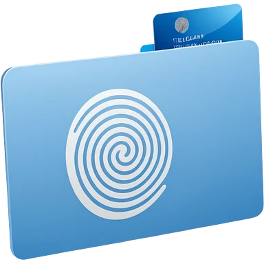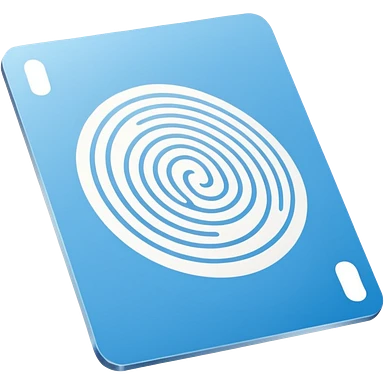 Minimalist blue Telegram channel icon of a card back. The card is face down, slightly tilted. A single, elegant fingerprint spiral is centered on the card back, symbolizing identity and unique associations. Monochromatic blue and white. Clean, flat design. emoji