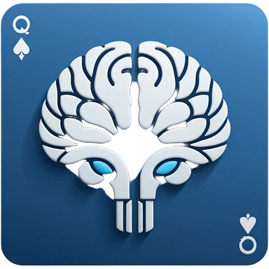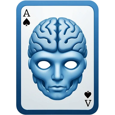 minimalist app icon, a face-down playing card, intricate back design with a stylized brain symbol in the center, monochromatic blues, isometric view, clean vector style, white background --style raw --stylize 150 emoji