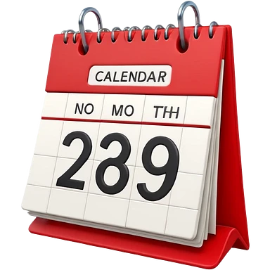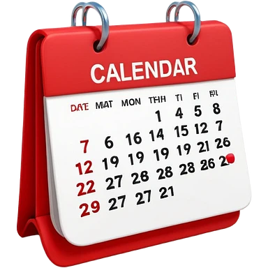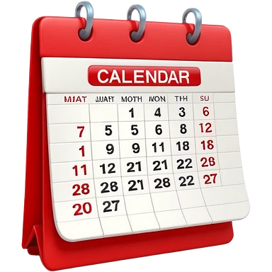 minimalistic Apple-style emoji icon of a calendar in 3D perspective, single date number centered, no text or month name, soft shadows, realistic glossy material, subtle depth, high-resolution, modern flat 3D design emoji | AI Emoji Generator