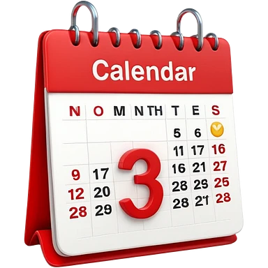 minimalistic Apple-style emoji icon of a calendar in 3D perspective, single date number centered, no text or month name, soft shadows, realistic glossy material, subtle depth, high-resolution, modern flat 3D designemoji