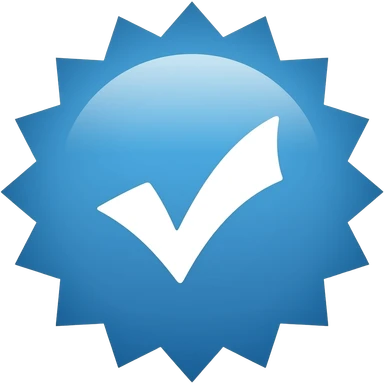 Prompt: A flat, solid blue starburst verification badge with crisp edges, uniform color, no gradient, centered white checkmark with sharp clean lines, minimalistic official social media icon style, vector design, high clarity, no shadows, no lighting effects emoji