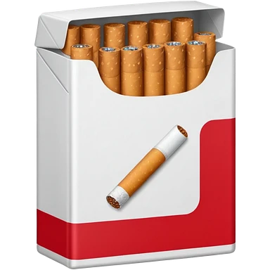 An open cigarette pack with visible cigarettes inside, designed in the style of an Apple iOS emoji. The pack should be clean and minimalistic, with soft gradients, no outlines, and a realistic but friendly look. The cigarettes inside should be neatly arranged and slightly detailed, with white filters and brown tips. The overall illustration should have a soft 3D appearance with gentle shadows and subtle texture. Transparent background. High resolution. PNG format. emoji