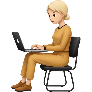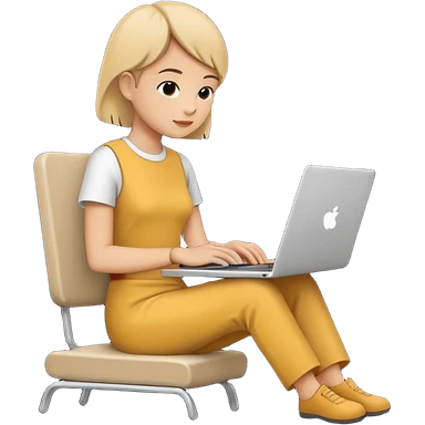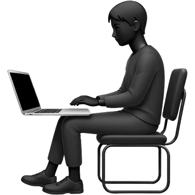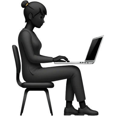 Minimalistic flat vector icon, iOS style, thin black contour on white background. Person silhouette sitting with a laptop, code brackets <> on the screen. Clean, no te emoji | AI Emoji Generator