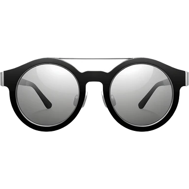 Minimalistic futuristic sunglasses emoji, metallic black and white, reflective lenses, smooth frame, flat vector, clean modern style emoji