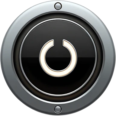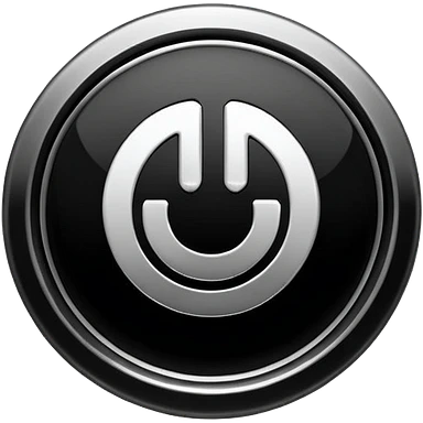 Minimalistic metallic power button emoji, perfect circle, black and white reflective metal, thin glowing outline, flat futuristic design emoji