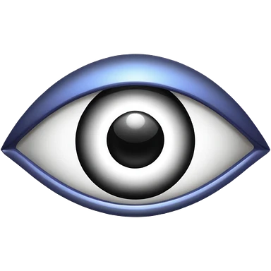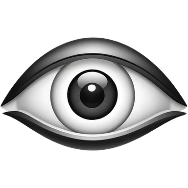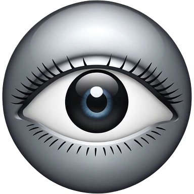 Minimalistic futuristic eye emoji, metallic black and white, reflective iris, smooth circular shape, flat vector, high contrast, centered, clean UI icon emoji