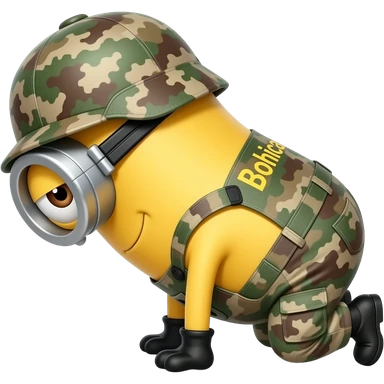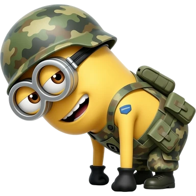minion in army fatigues bend over here it comes again text Bend Over Here It Comes Again emoji