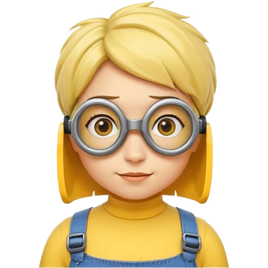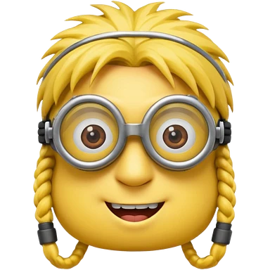 Minion emoji with a round head like normal emojis and a smurk like this emoji but a minion so basically that emoji with the goggles and the hair and not a funny head shape 😏 it should look like an actual minion not a human with African braids and a female minion make them feminine emoji