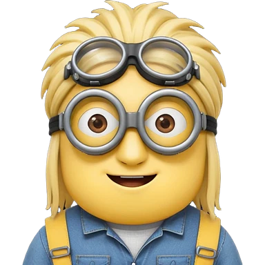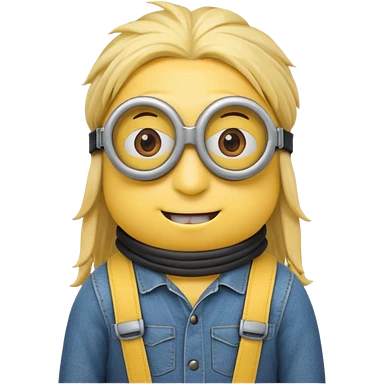 Minion emoji with a round head like normal emojis and a smurk like this emoji but a minion so basically that emoji with the goggles and the hair and not a funny head shape 😏 it should look like an actual minion not a human with African braids and a female minion emoji