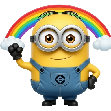 Minion gigante de Meu Malvado Favorito com superpoderes do arco-íris emoji